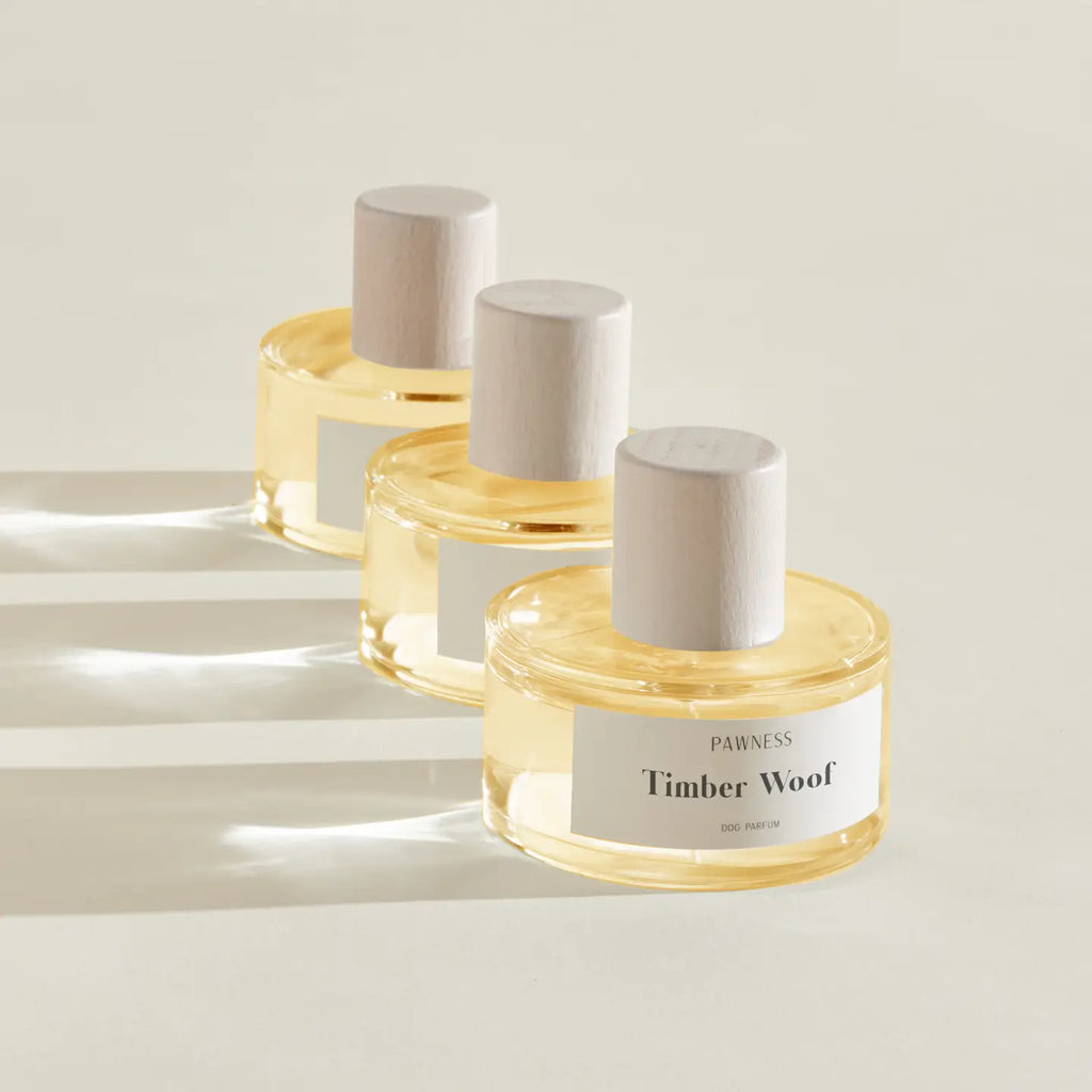 Hondenparfum Timber Woof combineert cederhout, vetiver, palmarosa en lavendel voor een rustgevende ervaring die voelt als een boswandeling. Stel je de vreugde en vrijheid van je hond voor terwijl ze genieten van de warme, aardse geuren, zich één voelend met de natuur. Of het nu gaat om een speelse run door het park of een gezellig dutje thuis, Timber Woof brengt het rustige, maar verkwikkende, aroma van de bossen naar elk moment. Het is niet zomaar een geur; het is een reis naar de wildernis voor je geliefde viervoeter.