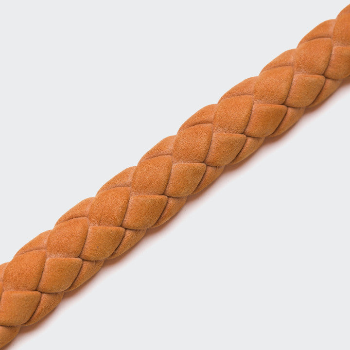 Handgemaakte gevlochten hondenhalsband in oranje gemaakt van het fijnste nubuckleer gedetailleerd met hoogwaardige echt messing hardware. Leer zal met de tijd donkerder en zachter worden.