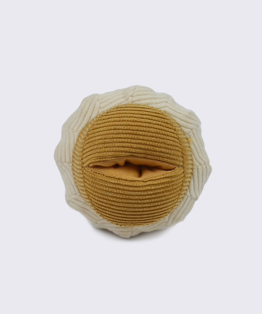 Cute sniffing cupcake with a hiding spot for a snack and a squeaker. This is a great beginner's toy for hiding snacks.