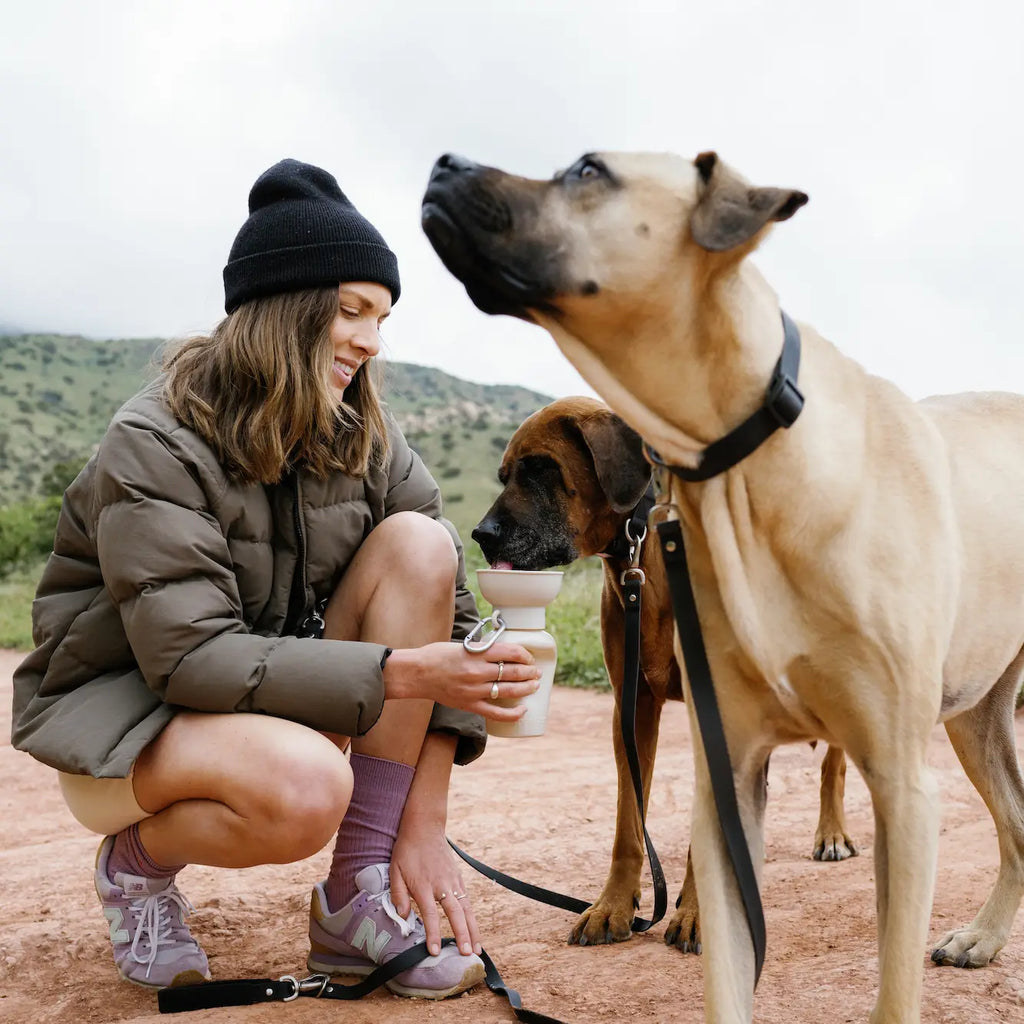 De perfecte oplossing om uw hond onderweg gehydrateerd te houden. Ontworpen voor uw hond om vers water uit de bijgevoegde kom te drinken zonder een druppel te verspillen. Knijp gewoon met één hand in de fles om de kom te vullen en laat hem los om het overtollige water weer naar binnen te laten lopen.